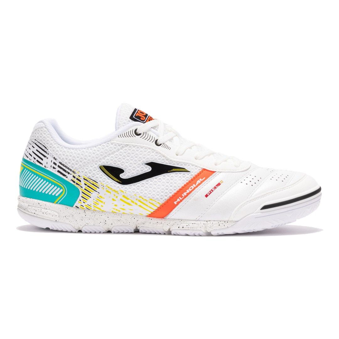 Joma Mundial – футзалки, отвечающие самым высоким требованиям профессиональных игроков. Они завоевали популярность у «профи», в том числе, за легкость и удобную и плотную посадку ступни. Верх этих футзалок классического кроя выполнен из дышащей микрофибры. Передняя часть – из натуральной кожи, гибкого и дышащего материала, отвечающего за идеальный контроль мяча в сочетании с синтетическим материалом. Для повышения воздухопроницаемости добавлены отверстия (технология VTS). Носок усилен накладкой из искусственной замши – для силы и точности удара. Пятка защищена от ударов и обладает необходимой жесткостью для фиксации стопы. За амортизацию в Mundial отвечает стелька из термоформованного EVA и межподошва из высококачественного и прочного филона. Подошва, которую характеризует отличное сцепление с поверхностью, изготовлена из износостойкой резины с применением технологии Durability.