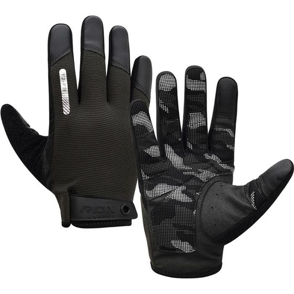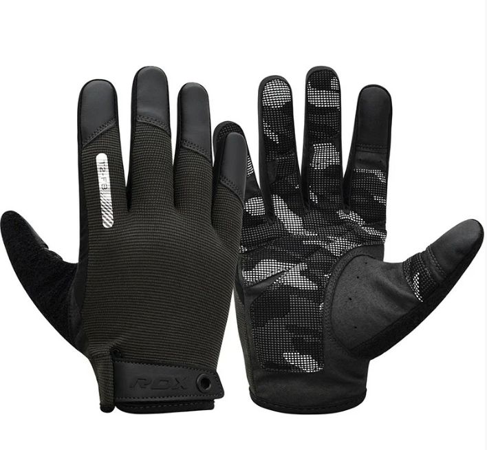 RDX Sports T2 спортивные перчатки с закрытыми пальцами Сделаны из лучшей эластичной ткани, идеально повторяющей форму и размер любых рук. В области большого пальца встроен легкий и воздухопроницаемый натуральный хлопок терри, эффективно поглощающий пот. Спандекс, расположенный по бокам пальцев, обеспечивает повышенную эластичность и не рвется. Оснащение язычками помогает быстро и легко снимать перчатки после каждой тренировки. Кончики пальцев спортивных перчаток покрыты проводящими силиконовыми чернилами, поэтому в них можно пользоваться любыми портативными устройствами с сенсорными экранами. Ладонь имеет противоскользящее силиконовое покрытие для хвата, расположенное поверх G-Foam набивки, обеспечивает усиленную защиту ладони во время подъема тяжестей. Быстросохнущая микрофибра, находящаяся у основания большого пальца, оставляет руки сухими даже после длительных тренировок. Эти спортивные перчатки с полностью закрытыми пальцами выпускаются с первоклассным эластичным ремешком на запястье.